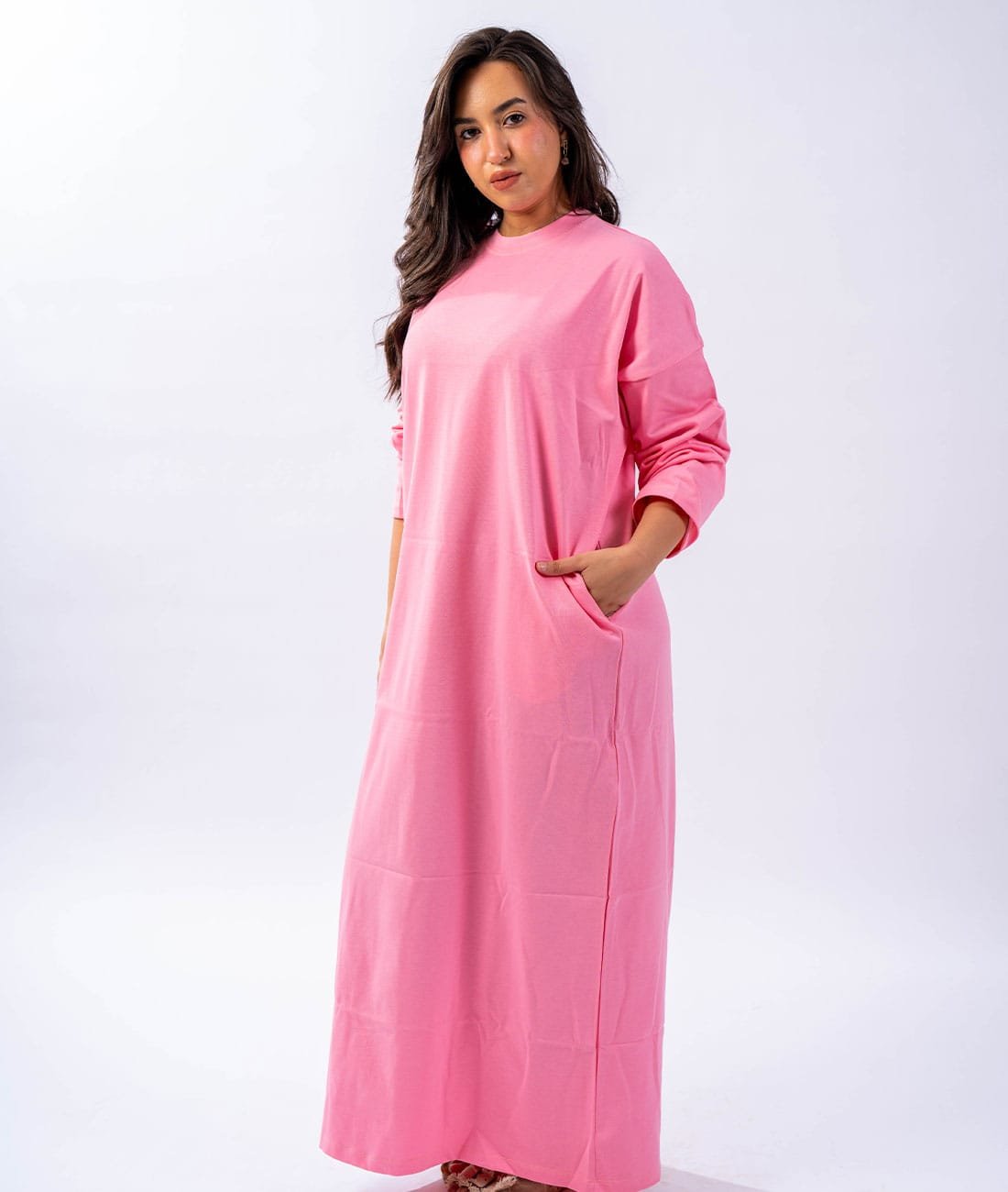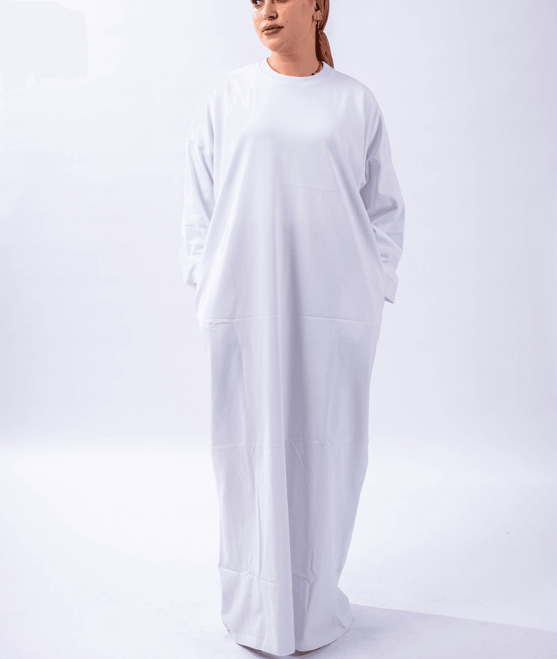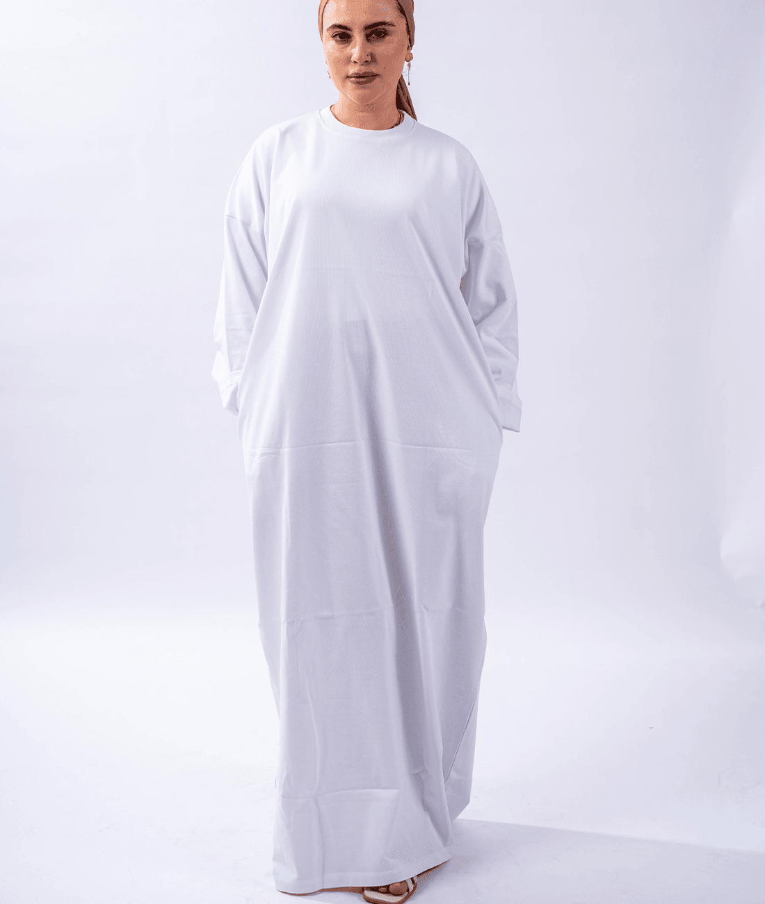 A loose-fitting, modern cotton dress designed for all-day comfort and effortless everyday elegance.