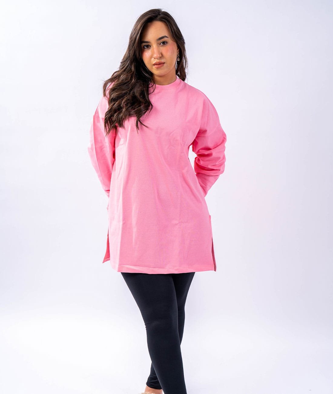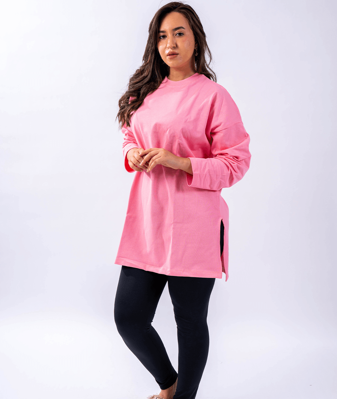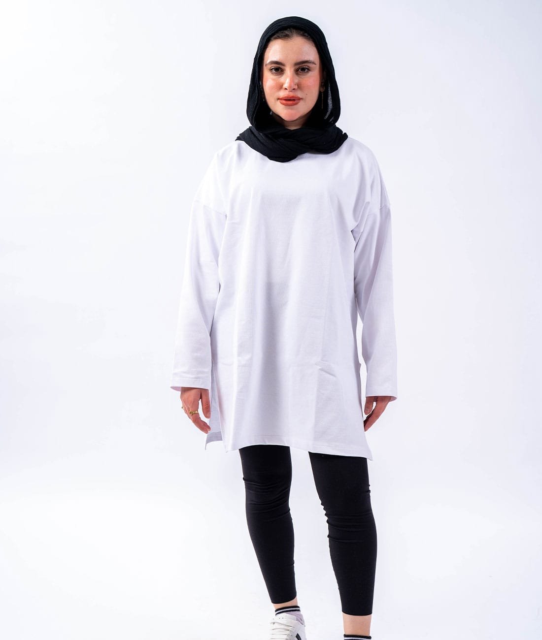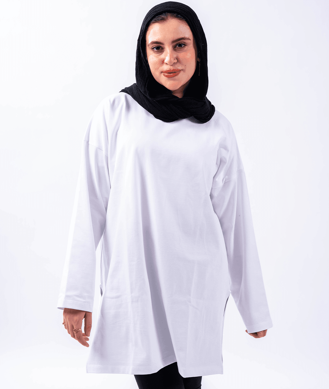 A loose-fitting, high-quality cotton T-shirt with a modern design and stylish side slits for added comfort and flair.