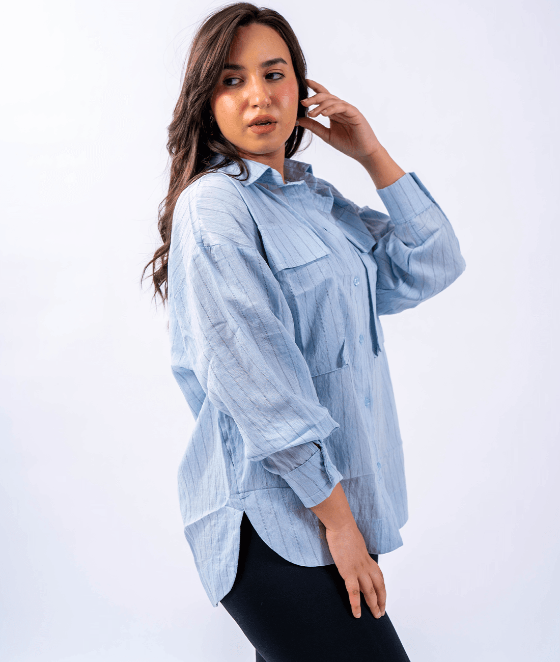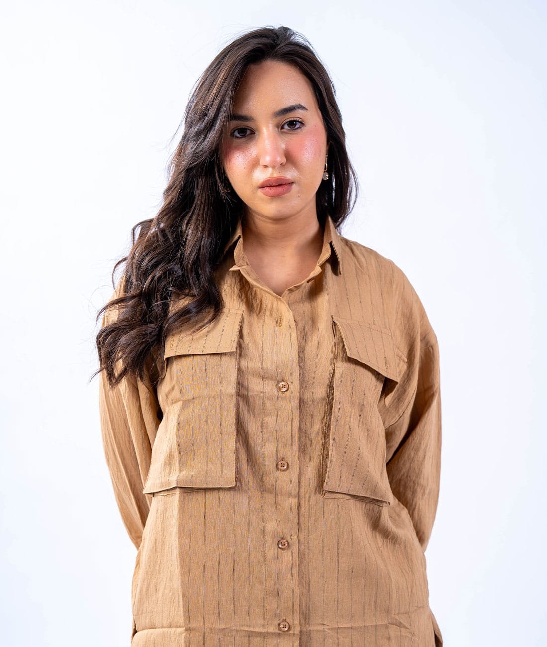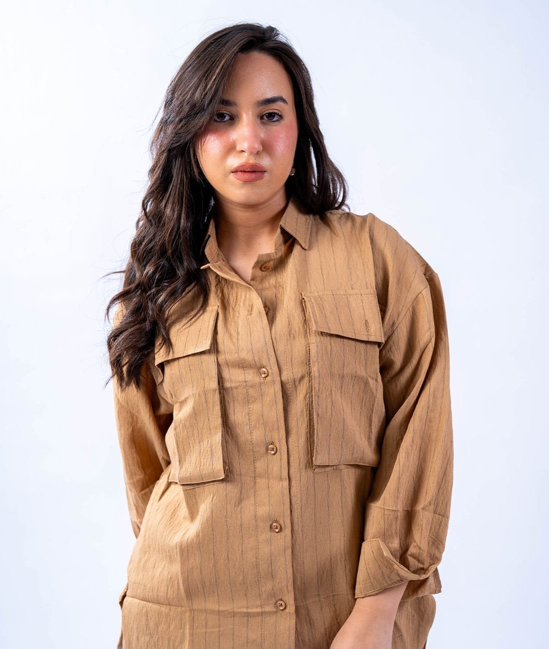 Made from imported high-quality linen fabric, featuring prominent front pockets and convenient side pockets for everyday comfort and elegance.