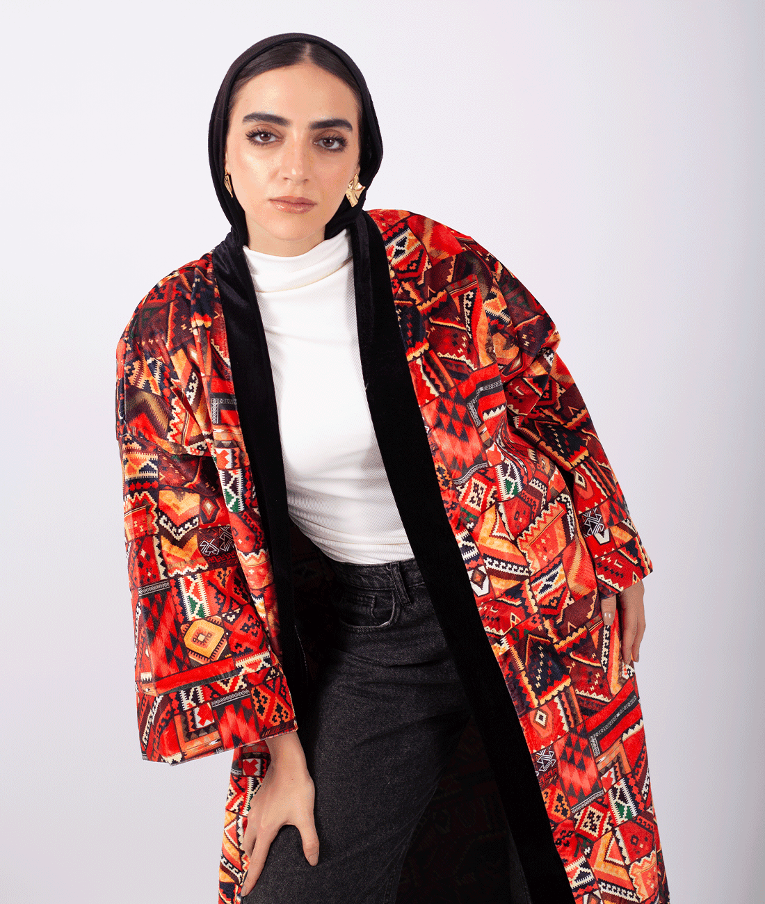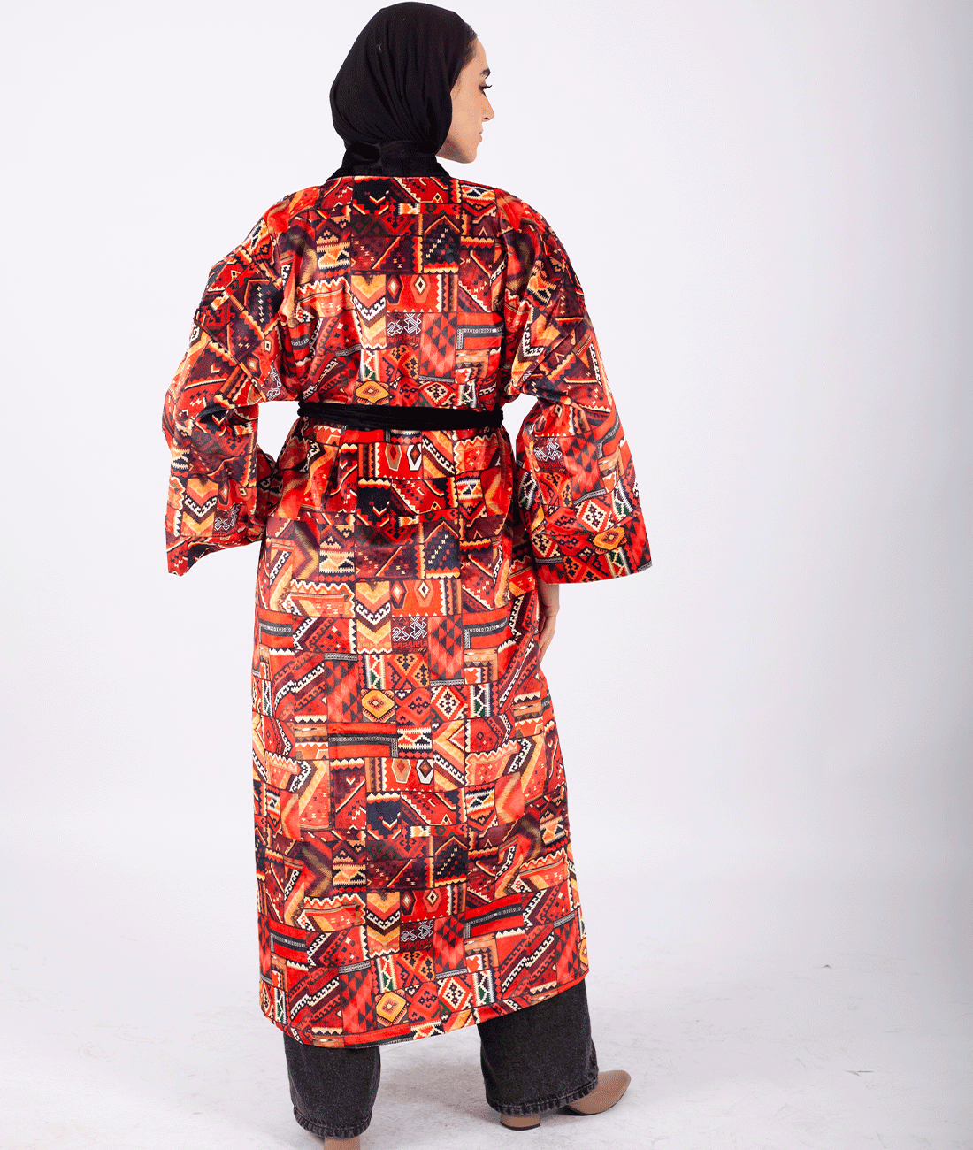 A luxurious velvet cardigan with a black belt to add an elegant and captivating touch. Perfectly suitable for Ramadan gatherings and special evenings, combining comfort with refined elegance.