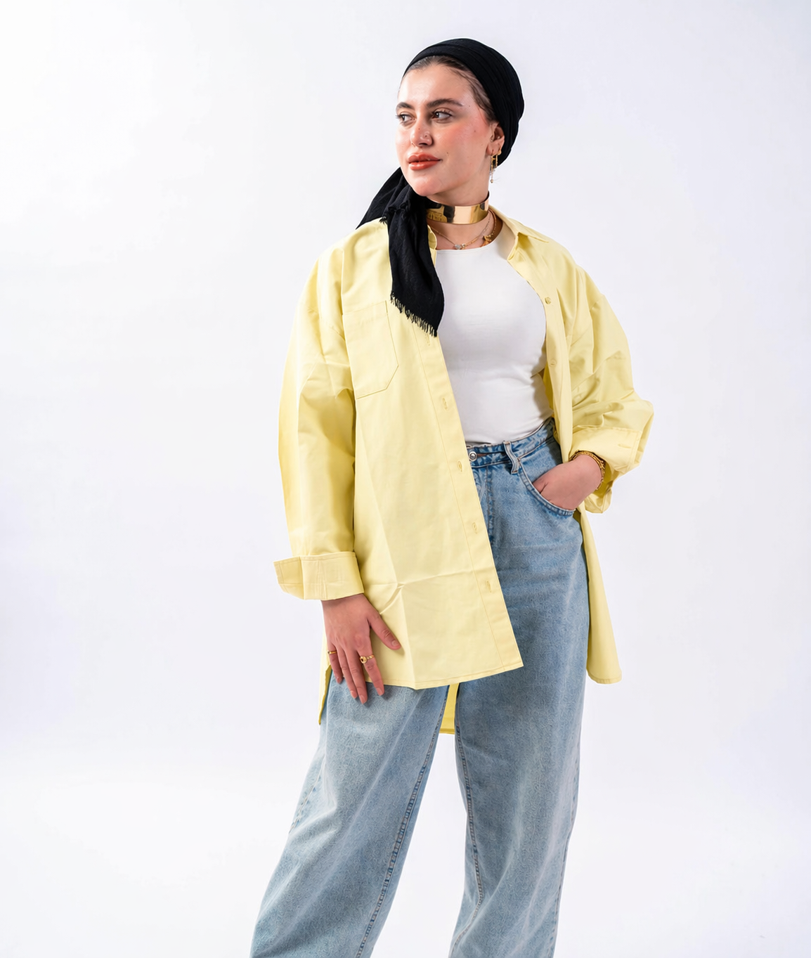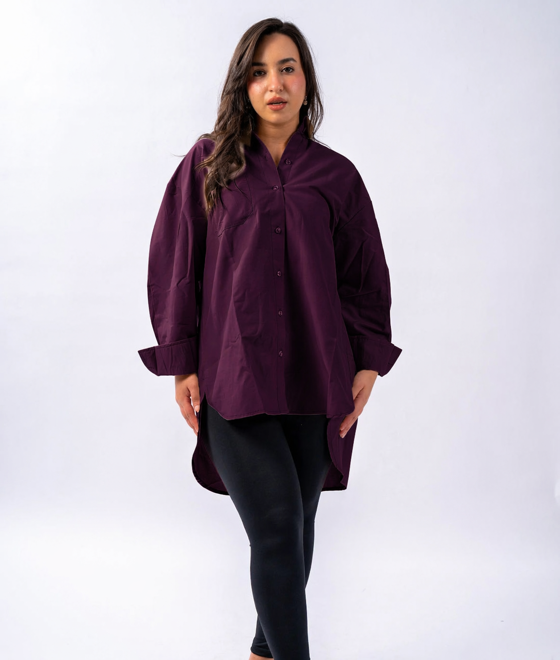 A stylish oversized poplin shirt, designed for a relaxed and trendy fit.