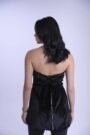 Embroidered tulle fabric featuring plush letters, complemented by a soft plush collar and a black plush belt.